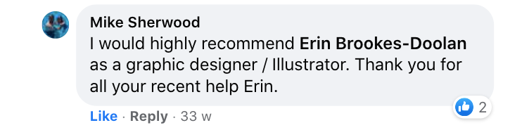 "I would highly recommend Erin Brookes-Doolan as a Graphic Designer / Illustrator. Thank you for all your help, Erin."