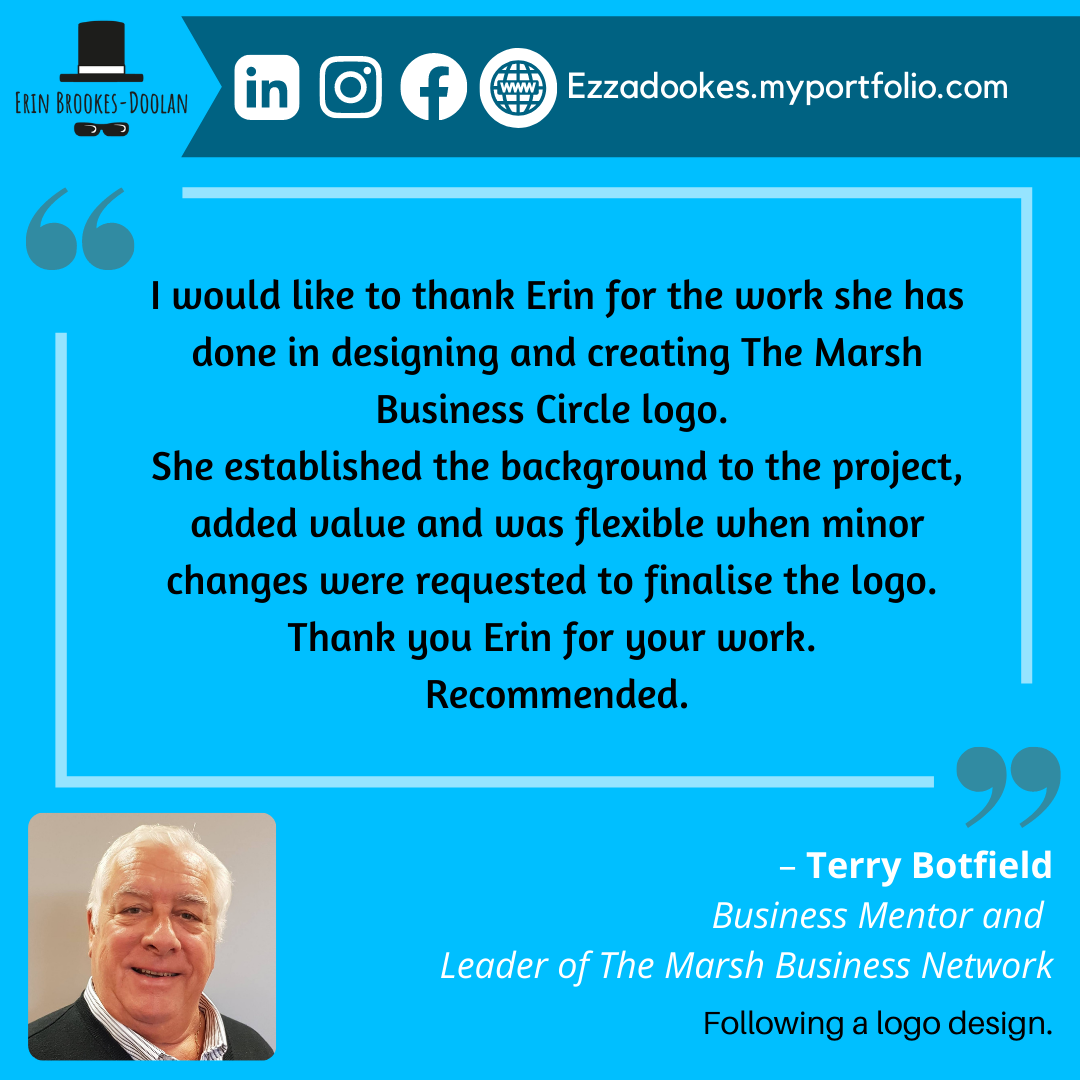 "I would like to thank Erin for the work she has done in designing and creating The Marsh Business Circle logo. She established the background to the project, added value and was flexible when minor changes were requested to finalise the logo. Thank you Erin for your work. Recommended."